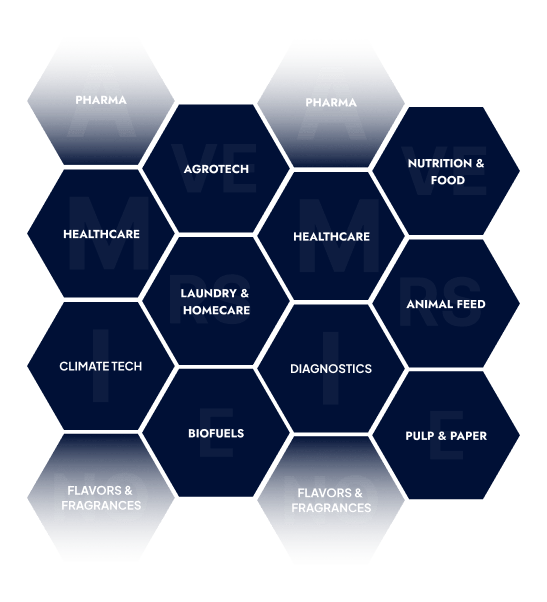 Pharma · Healthcare · Diagnostics · Flavors & Fragrances · Nutrition & Food · Animal Feed · Pulp & Paper · Agrotech · Laundry & Homecare · Biofuels · Climate Tech